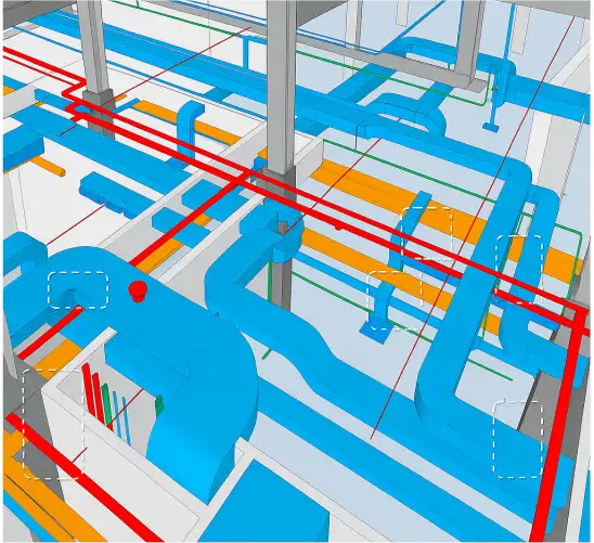 In the past, clash detection was handled on-site, which often led to substantial changes in the construction plan due to major clashes, resulting in costly overruns and project delays. However, with the advancements in technology, clash detection now takes place during the pre-construction phase, allowing potential issues to be identified and resolved before work begins. This proactive approach saves both time and money during the construction process. Essentially, clash detection services help in efficiently identifying, inspecting, and reporting any major interferences in the construction project. In the BIM modeling process, MEP clash detection addresses collisions between different disciplines, such as architecture, structure, and MEP systems.